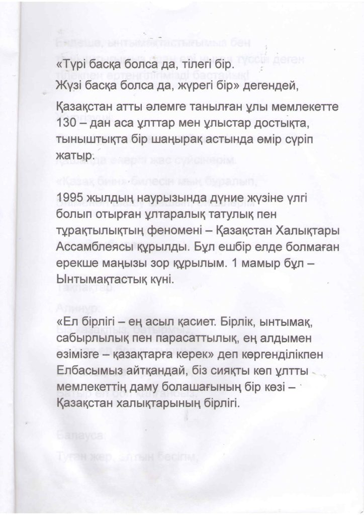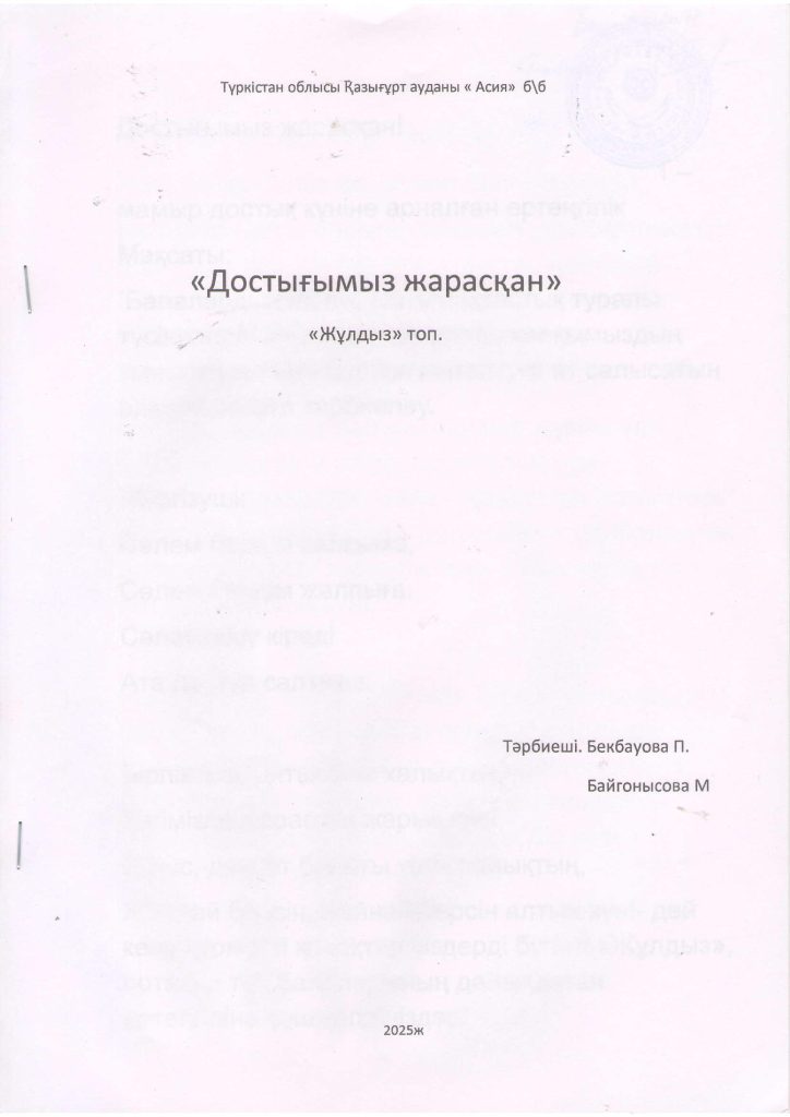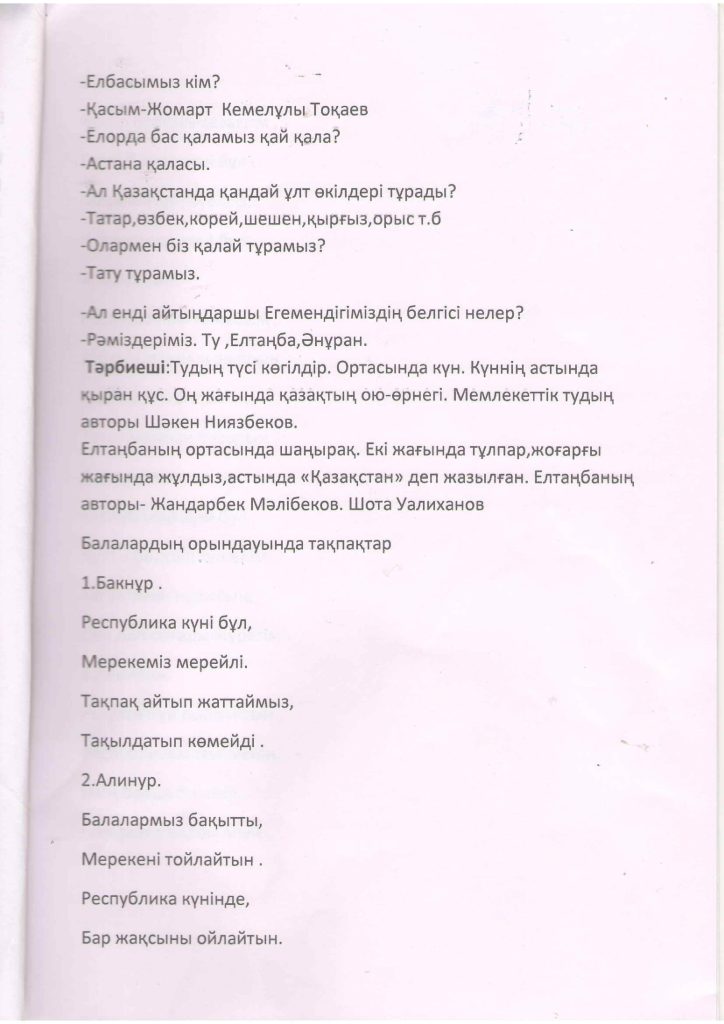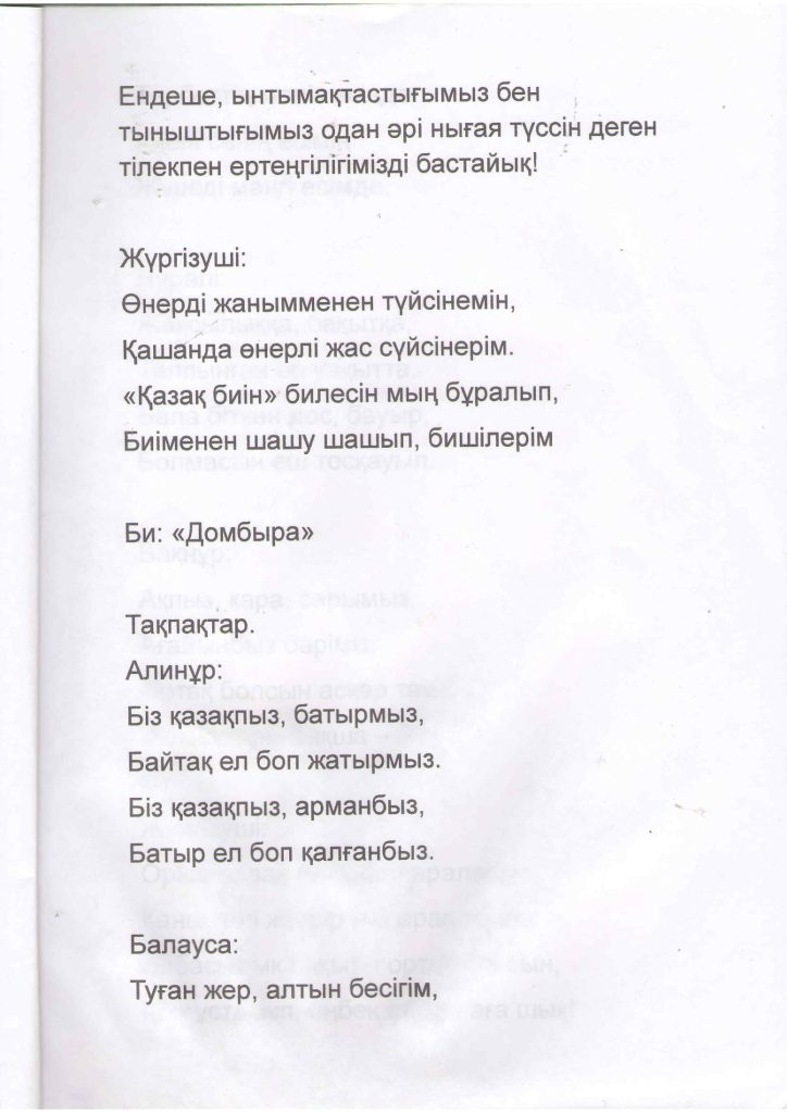 «БІРТҰТАС ТӘРБИЕ» БАҒДАРЛАМАСЫ ІС-ШАРАЛАРЫ