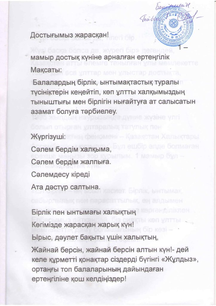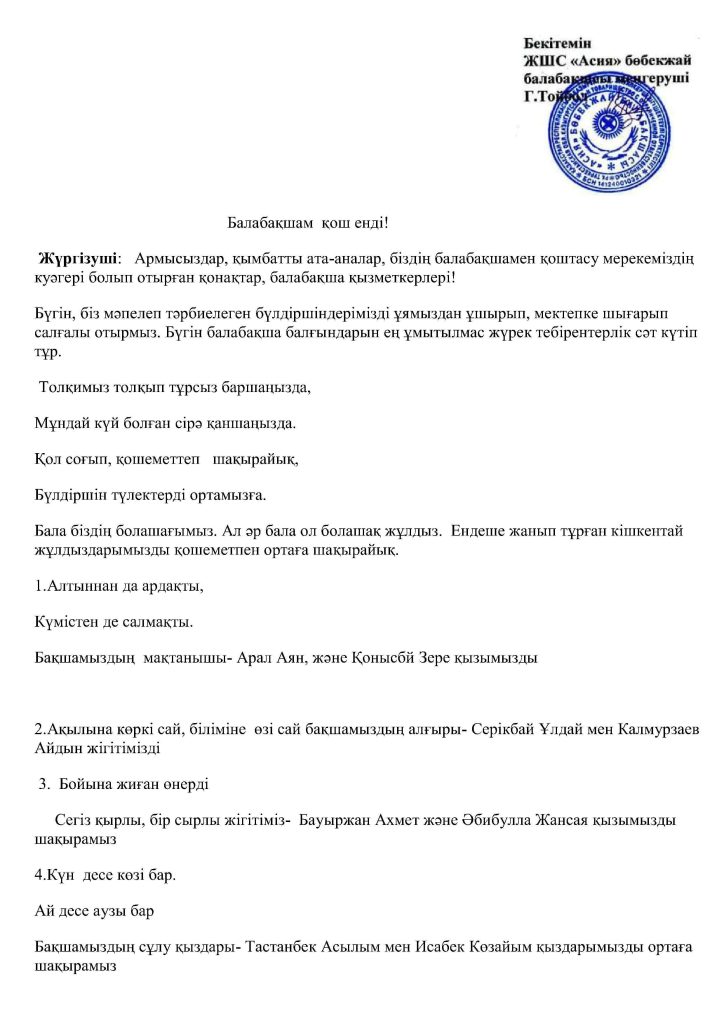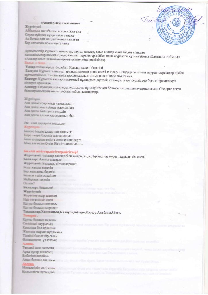 БАЛАЛАРДЫҢ АС МӘЗІРІ
