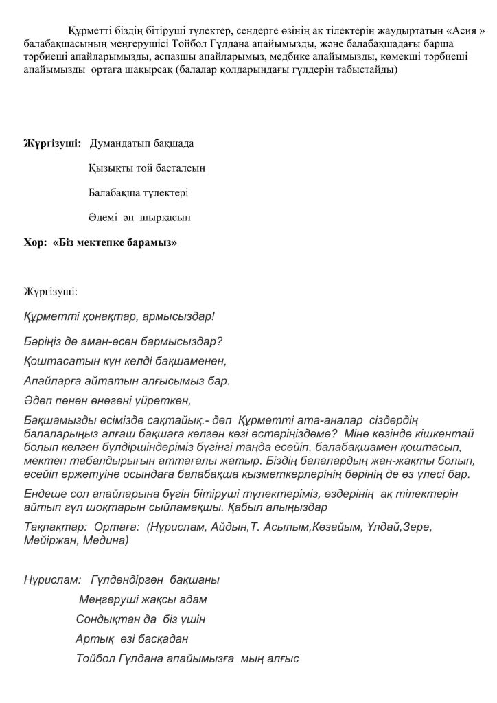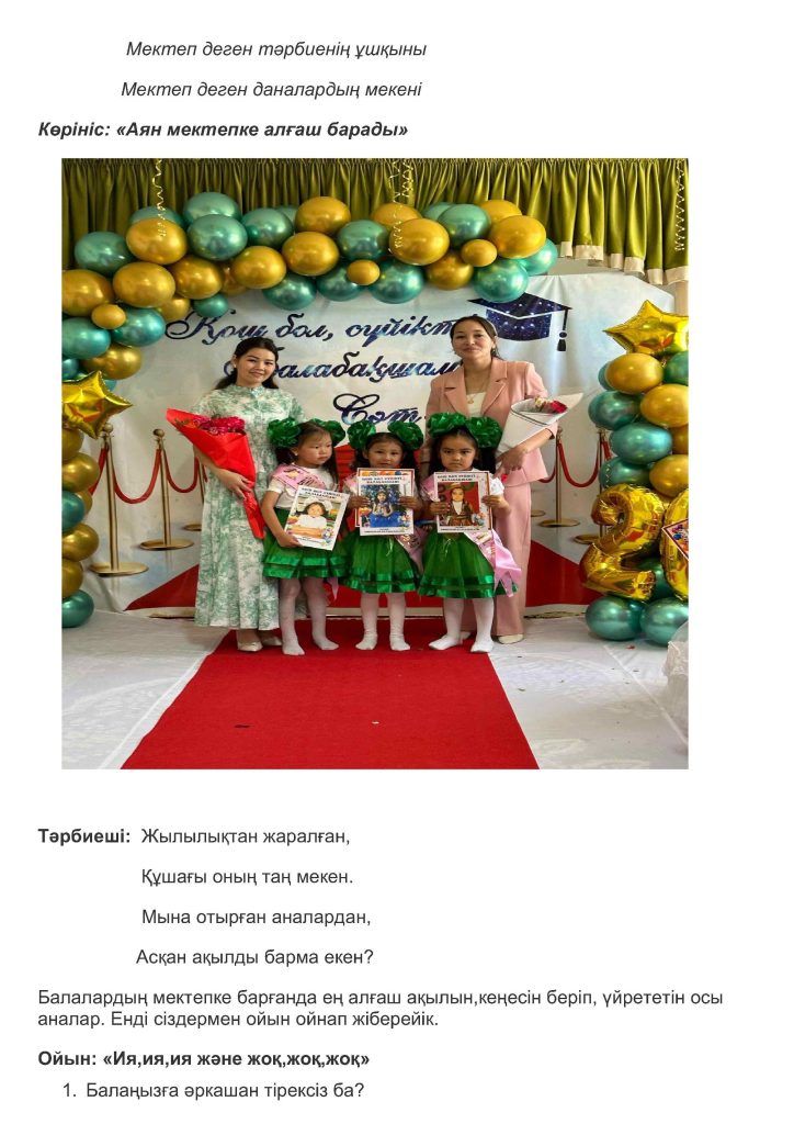 БАЛАНЫҢ БАЛАБАҚШАҒА БЕЙІМДЕЛУІ
